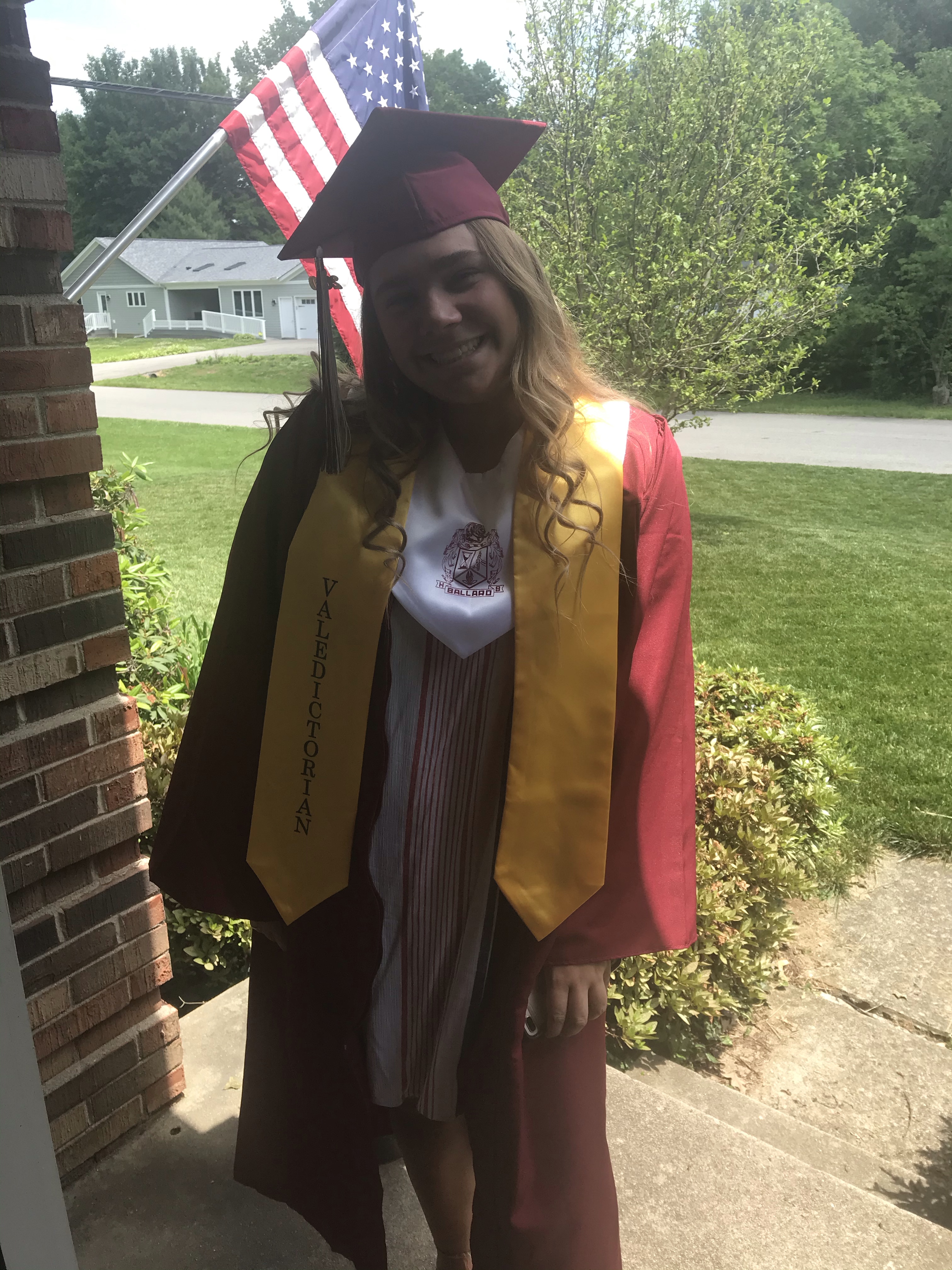 On graduation day after they aired the ceremony on Youtube, this sweet student of two years popped by my door. I have known her since kindergarten and her mom, too! What a sweet surprise. I stayed far away!
