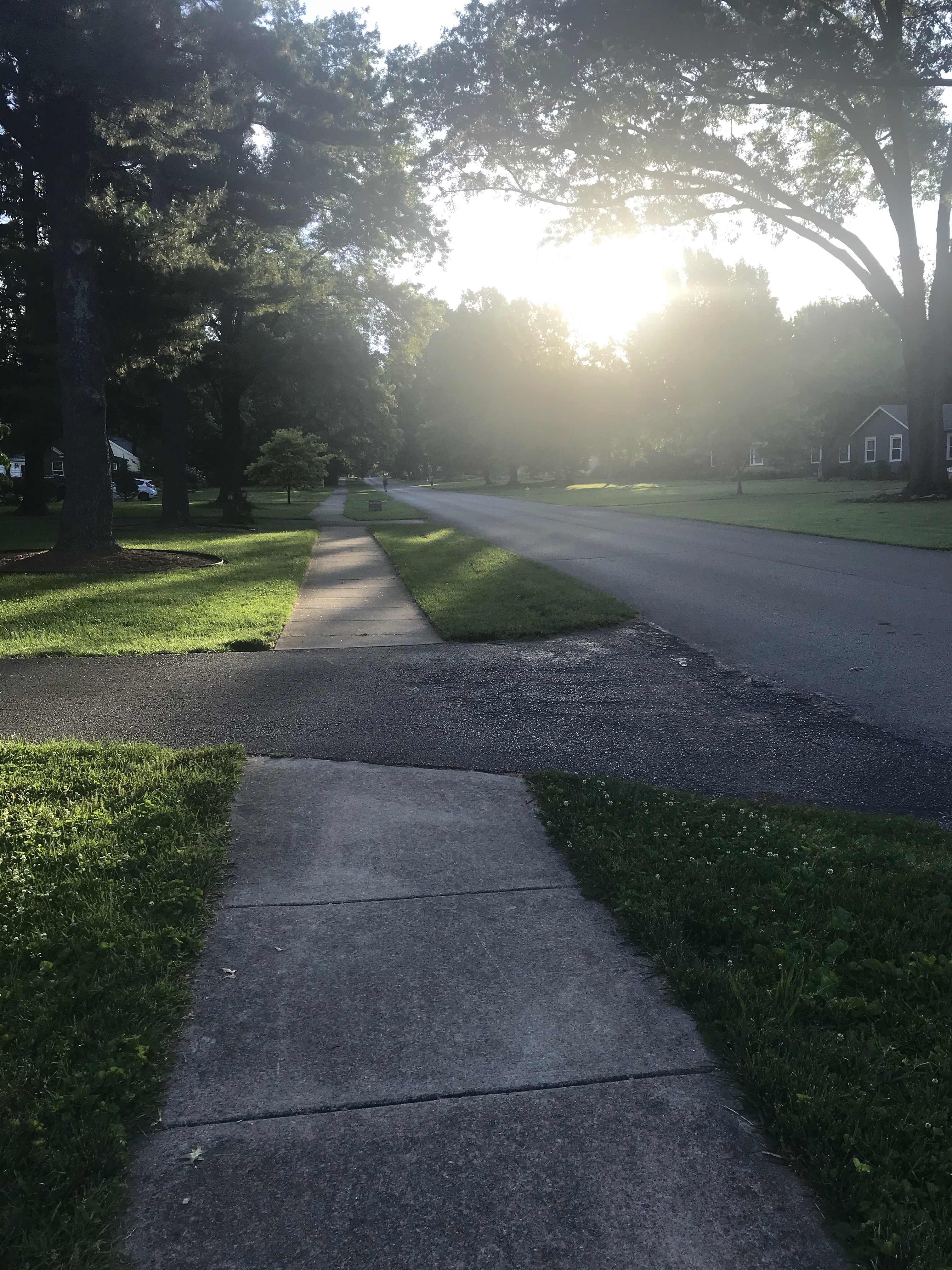 I try to walk before 8 am so it isn’t too hot. This was a nice view of the sun coming up. I love the mature trees in my neighborhood.