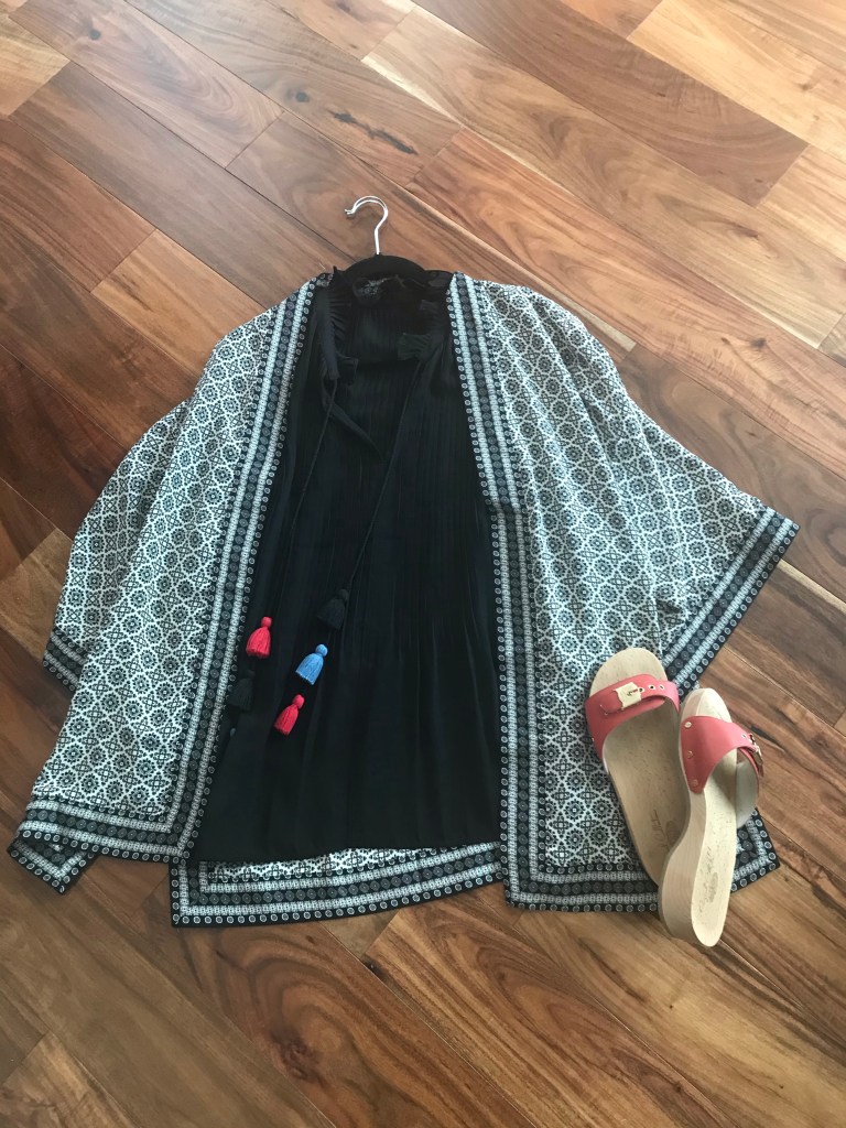 I love this combo. It’s a sleeveless Loft top and a kimono from TJ Maxx. This is an easy combo to put on when I don’t have much time to plan.