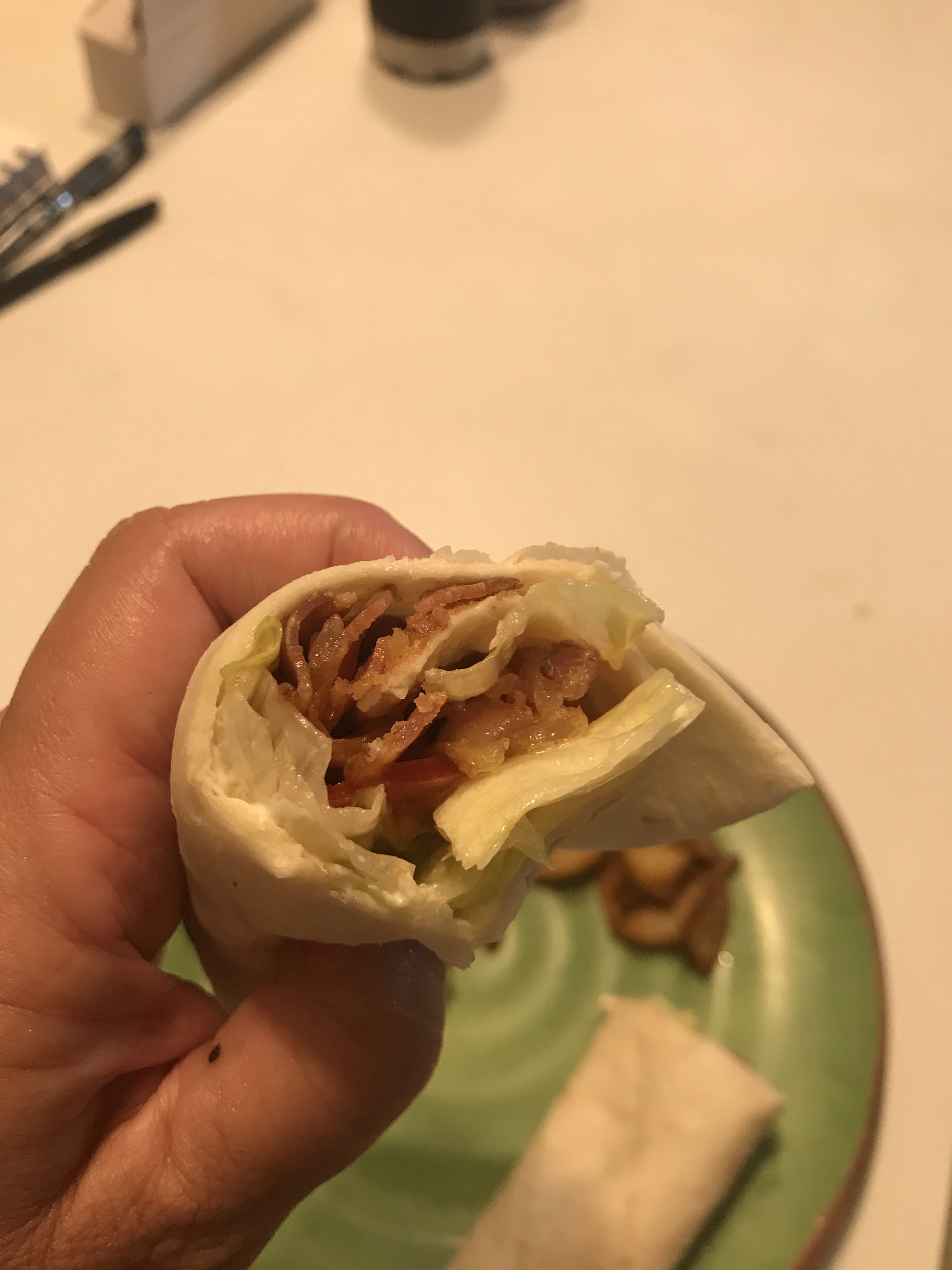 I made BLT wraps for the boys one day for lunch. I offer to make them something some days and some days they take care of their meals. They aren’t big on lunch meat sandwiches so they usually make themselves leftovers, grilled cheese, quesadillas, or Ramen.