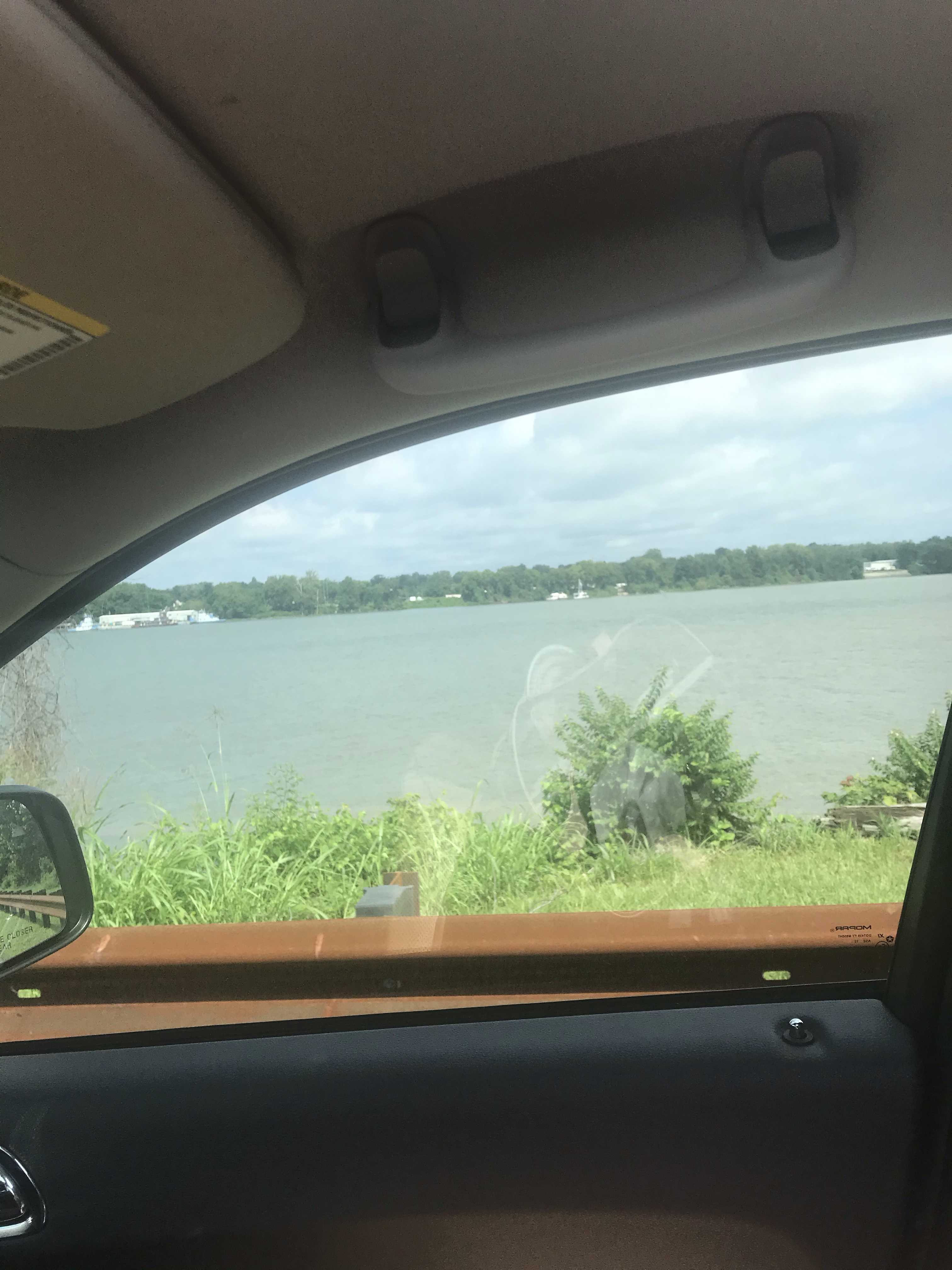 You are driving parallel to the Ohio River the rest of the way to the ramp where we launch the boat.