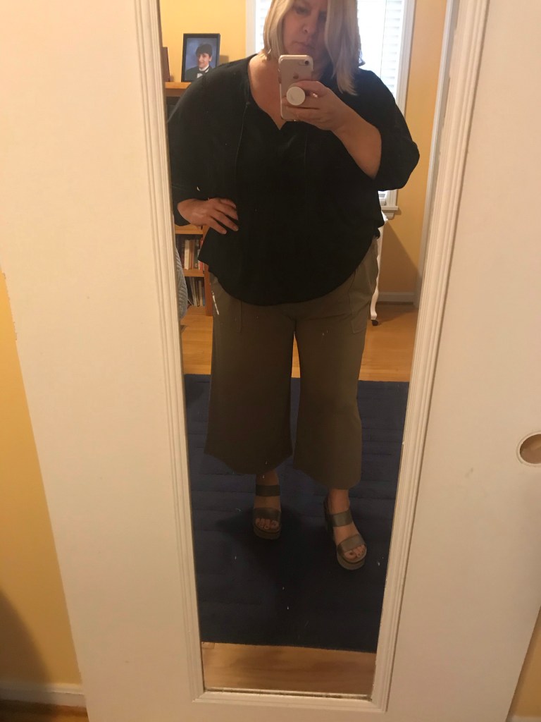 This was a weekend outfit. I am looking for the perfect wide leg cropped. These are not it. I sent these back to QVC – They were Lisa Rinna pants! Real Housewives, anyone? Anyone have an idea for me for what I am looking for?