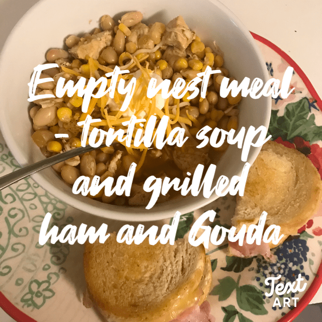 tortilla soup with little grilled ham and cheese on sourdough