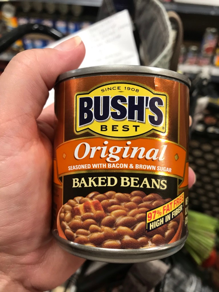 Shopping now: a little tiny can of beans. Womp, womp. So sad and small in my palm.