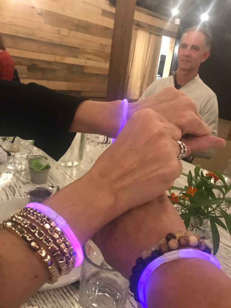 We went to the country and ate in a barn. It is a farm to table concept at a farm. The owners are also big into art collecting/curating. After we ate (the food was not that good so I am not even showing you, but it was an experience), we got glow bracelets to go on an “art walk”. We didn’t really know what to expect.