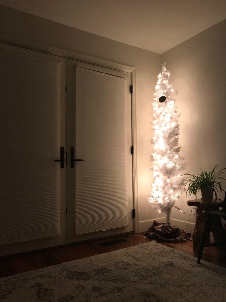 Saturday morning was coffee and lights. Notice there are still no ornaments on our pencil tree.