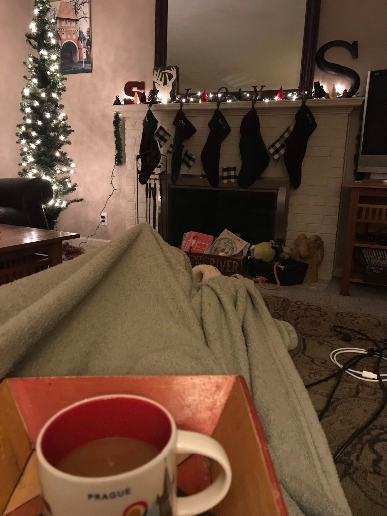 I decided to go watch some t.v. on my own in my room because I have not been enjoying my white tree lit up like I should. I got sucked into Virgin River on Netflix and now I am hooked! The acting of the mayor, Hope, is so bad, though. Everyone else is pretty good except some of the older women. Ha!
