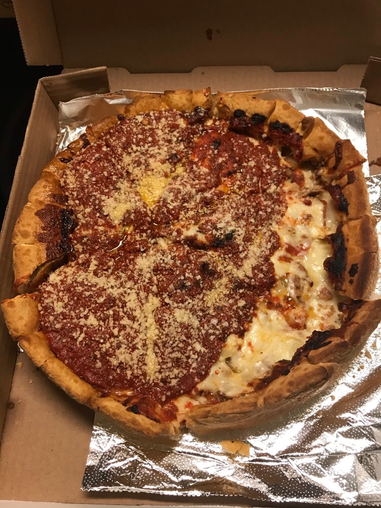 Friday night we decided to get Chicago deep dish pizza. We could only eat one piece each! The four of us watched some t.v. together and it was nice.