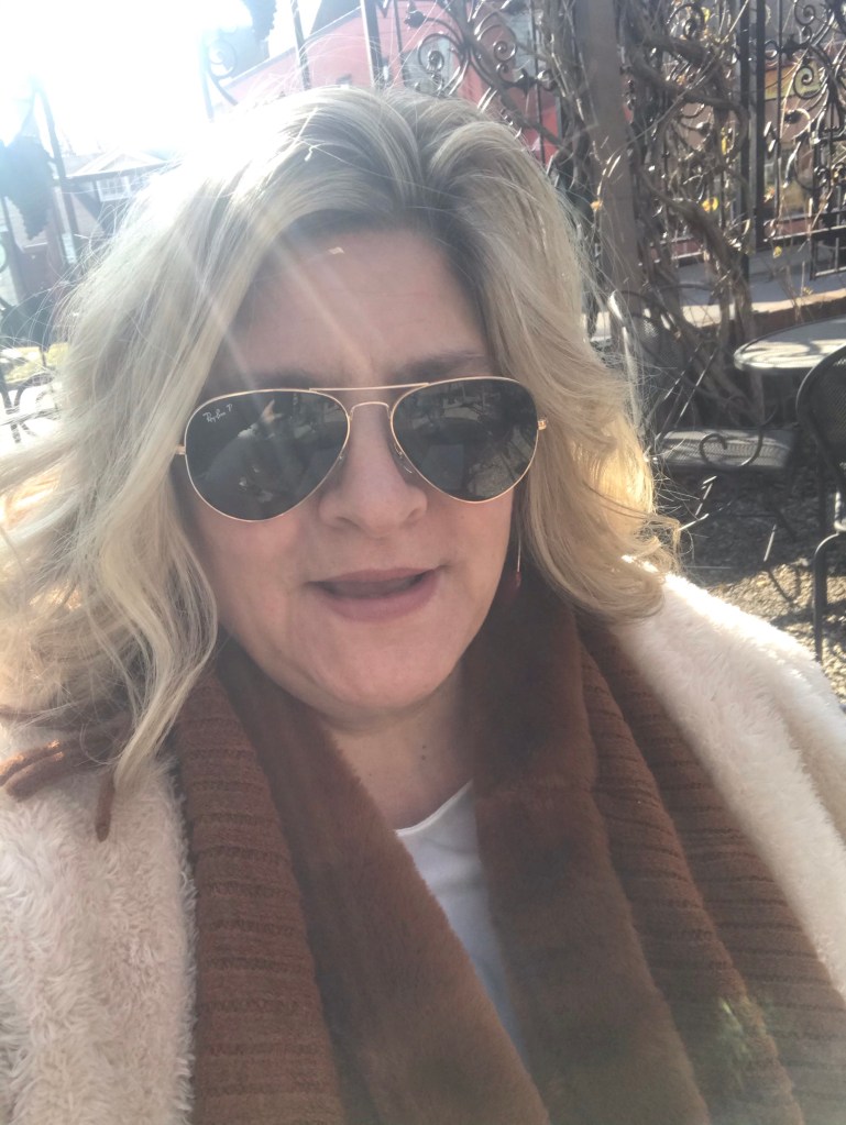 My reader and friend Kim looked so cute for t-shirt and cardigan day! She has recently become a Vuori jogger convert. She is wearing a Cheers t-shirt (J.Crew Factory) with a Walmart cardigan (old) and Allbirds sneakers.