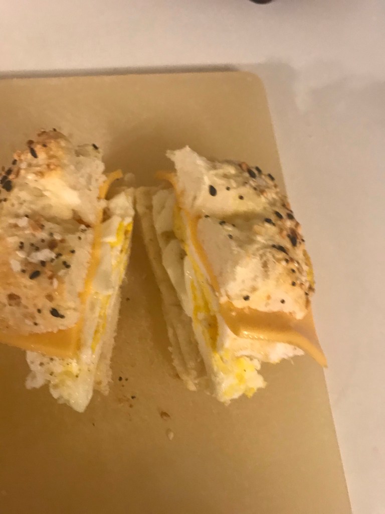 I re-created my weekend bagel purchase but without the bacon.