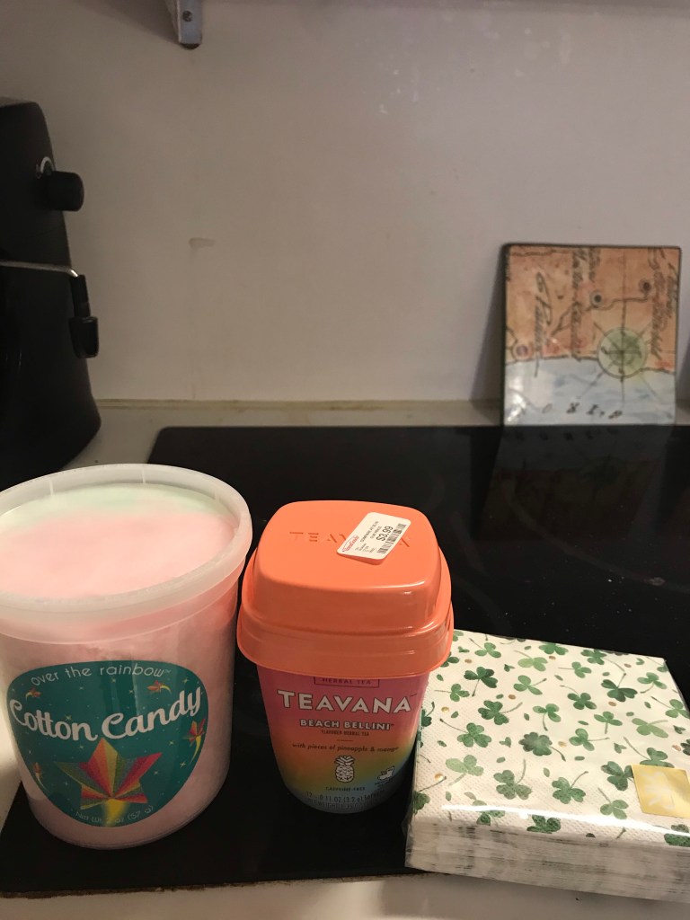 I also picked up cotton candy for a champagne drink! And, I have been thinking about this tea and found it for like a third of the price, and the cute napkins will be part of my March decor which I plan to do today.