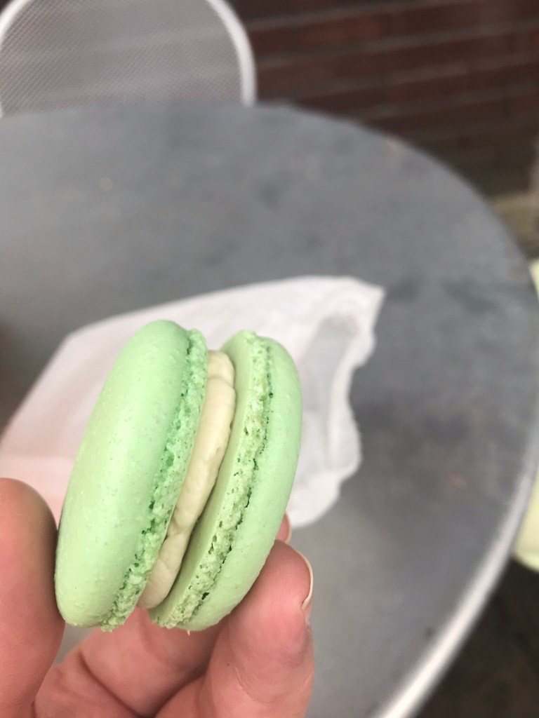 where we ordered vanilla lattes, breakfast sandwiches, and two macaroons.