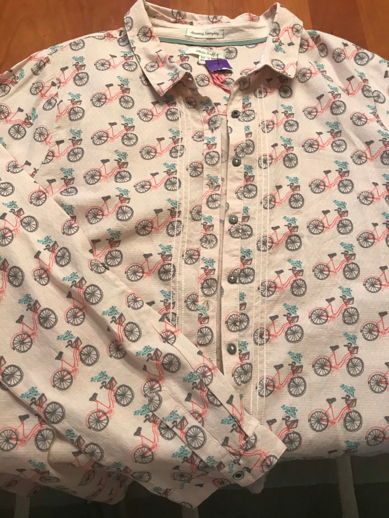 2. My parents loved antiques when I was growing up so we were constantly at thrift stores, Goodwills, and garage sales. I always loved hand me downs from my mom’s friends’ daughters. I love the shoes you got and you sister’s bicycle shirt will be so much fun to wear it’s kinda quirky and as an Art teacher it’s perfect! Too bad about that last stop – it is a beauty.