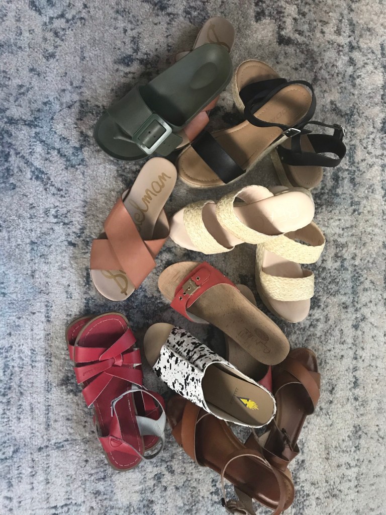 I love your red dr scholls! (& your fiesta shirt!) 🤣 I haven’t purchased any new summer shoes but have so many I love already ! I have the white faux birks from amazon and love them. Are they the rubber kind? That’s what I have. Hadley has those too + regular faux birks from amazon that she loves
