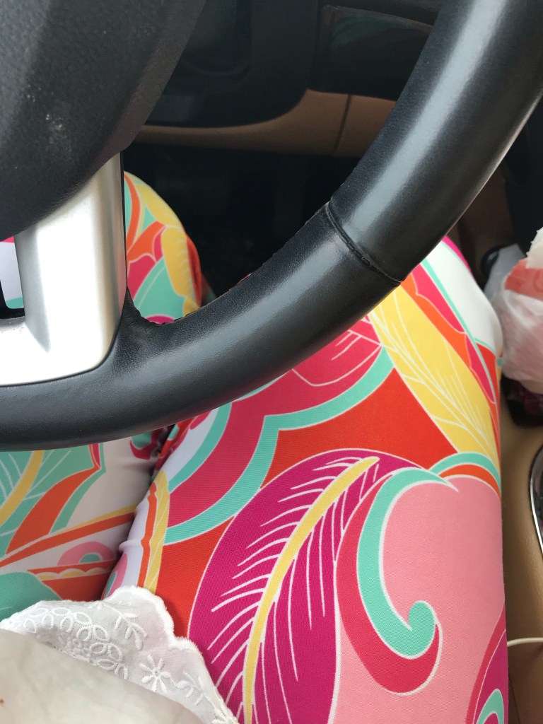 One upside to the cold classroom is that I have two horse scarves for Derby week! This day I wore white J.Jill capri leggings, an Old Navy long sleeve dress, a vest, and the scarf. I was still cold.