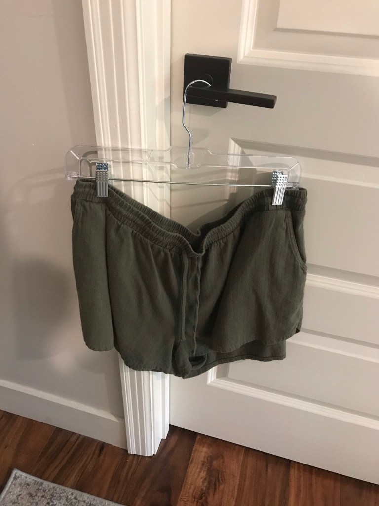 I have another pair of drawstring olive shorts. I love this style. They can be dressed up slightly or dressed down.