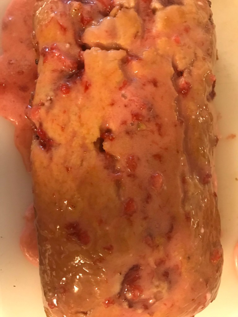 It isn’t a super sweet bread. It is big on the strawberry flavor.
