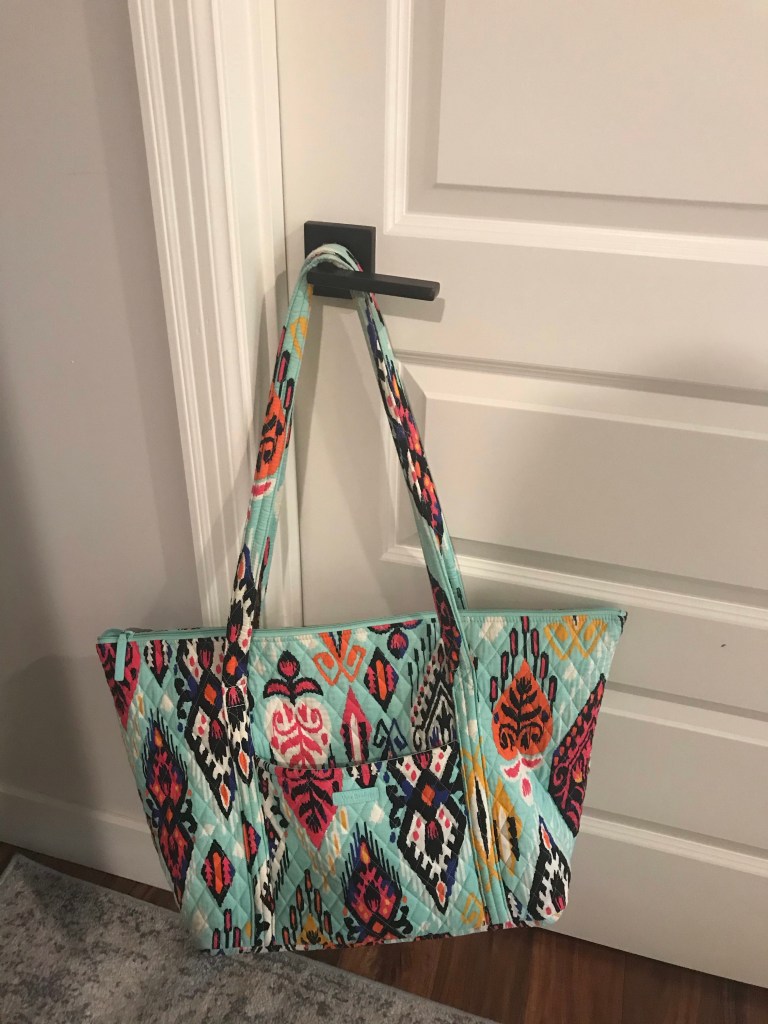 Last week I stayed in a hotel with my two friends. I only have a carry on suitcase and a big green duffle bag. I was thrilled to find this Vera Bradley for $25. It looks brand new. This was perfect for a one night stay.