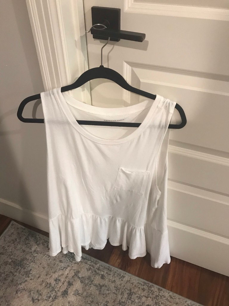 This is American Eagle and still had original tag on it which said $28. I bought it for $7. I thought this would be cute under a kimono and already wore it that way. I had been wanting to try a ruffle at the bottom but wasn’t sure if I could pull it off with my mid-section area.