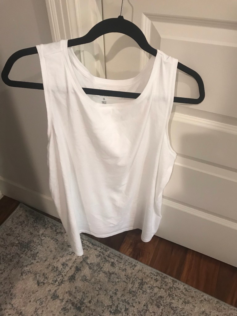 And finally, for $7 also, was this basic white tank I thought could also be handy under a kimono. I have worn it to take walks in but haven’t styled it yet.
