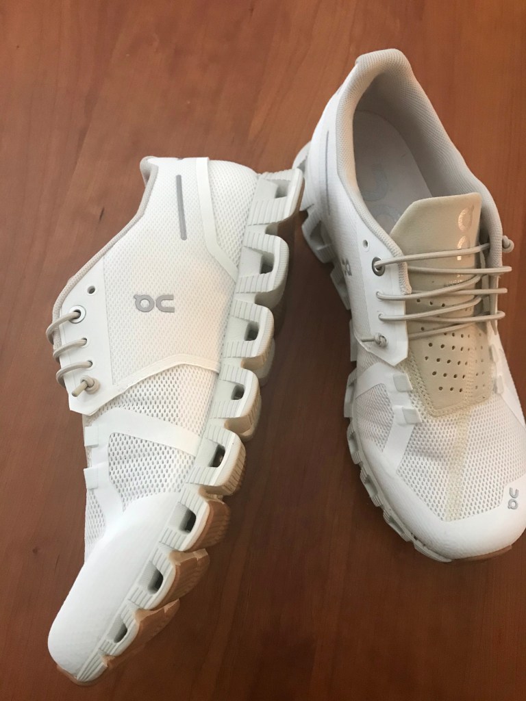 My new shoes arrived! I love them! I don’t know if it is because I was wearing very worn out shoes to walk in, but these have great support in my opinion. The tongue is attached and you don’t tie them. I like that aspect, too!