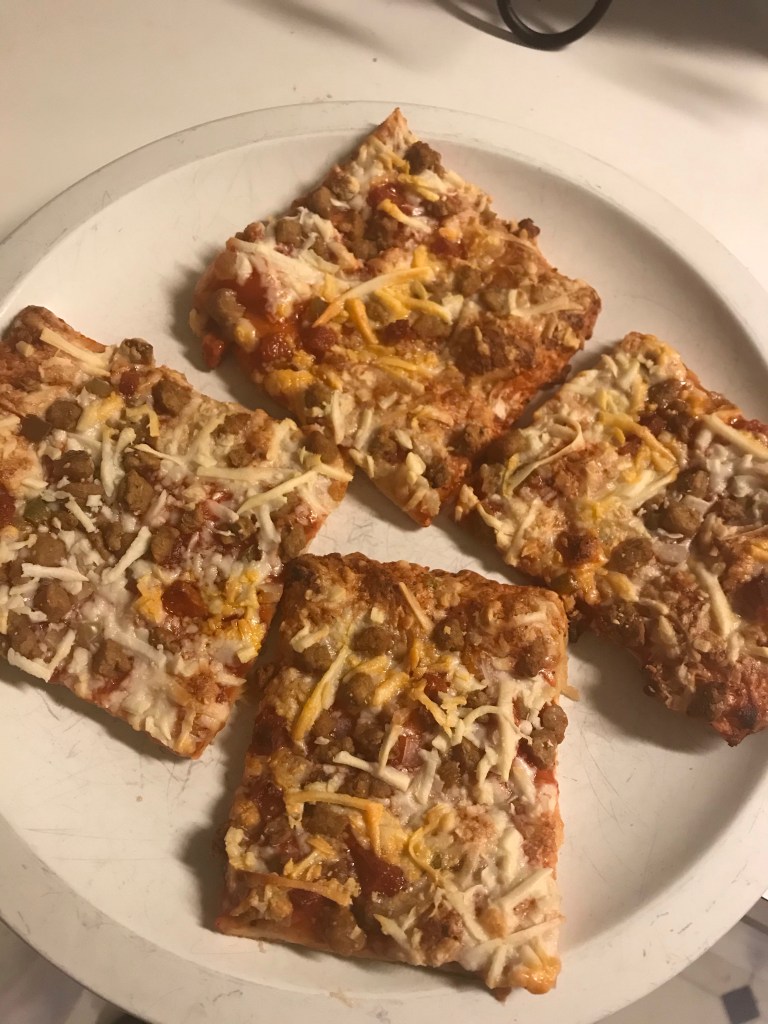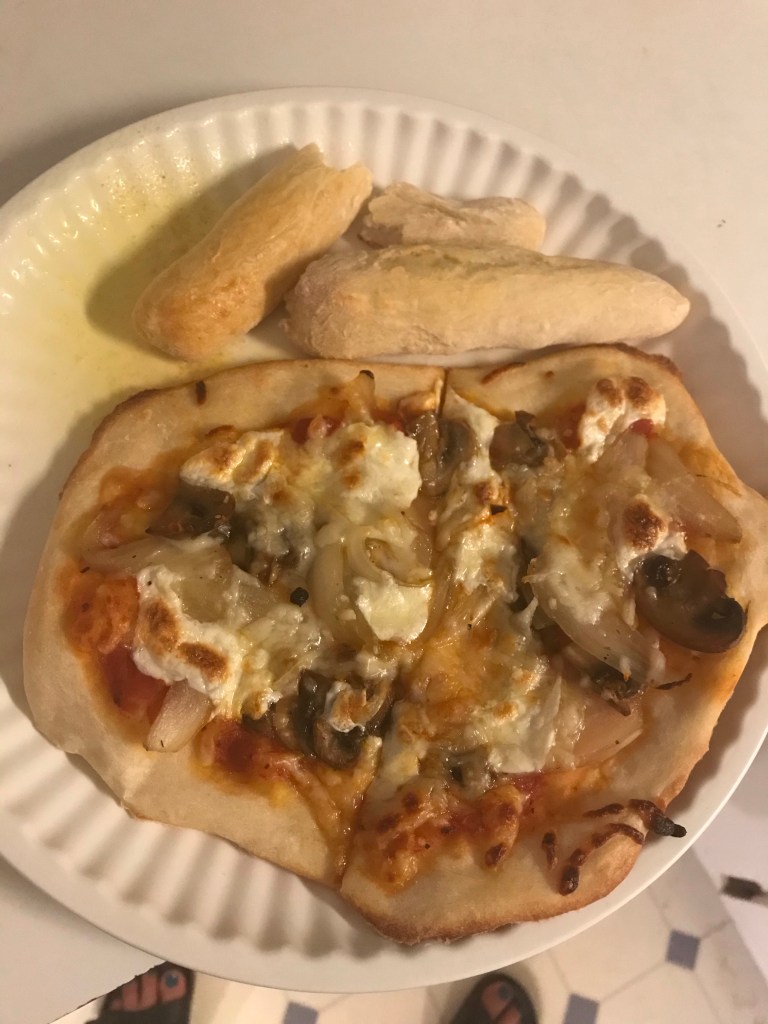 We went home at dinner and the boys ordered Domino’s for their friends and Tom had a Totino’s (he loves them!), and I made the skinny biz pizza dough pizza for me.