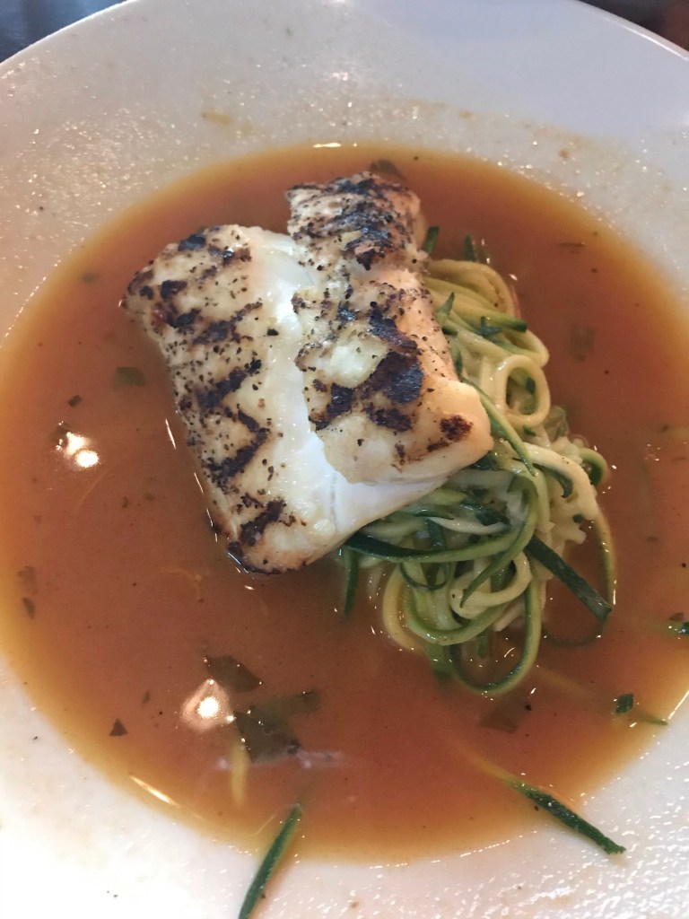I ordered grouper on a bed of zucchini noodles in a saffron broth. It was good!
