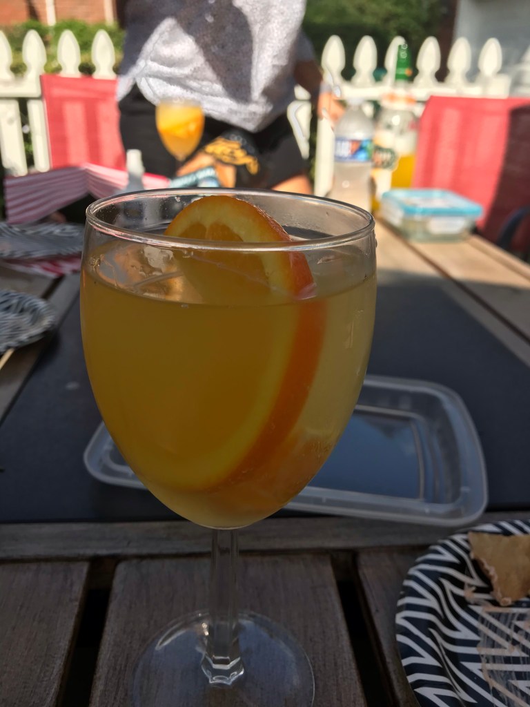 Beautiful patio and yard and a delicious drink that I enjoyed too much – Deep Eddy orange vodka and orange La Croix.