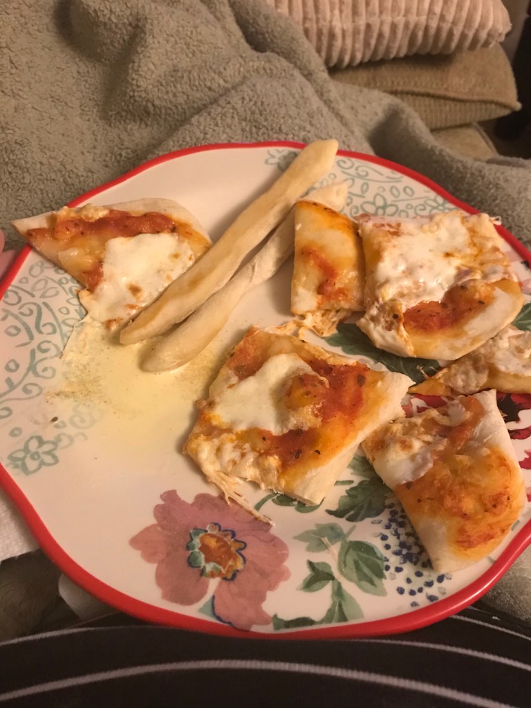 I stayed way longer than I thought I would but it was so fun! I came home and Tom had eaten leftovers so I finished off my skinny pizza dough with a couple of breadsticks.