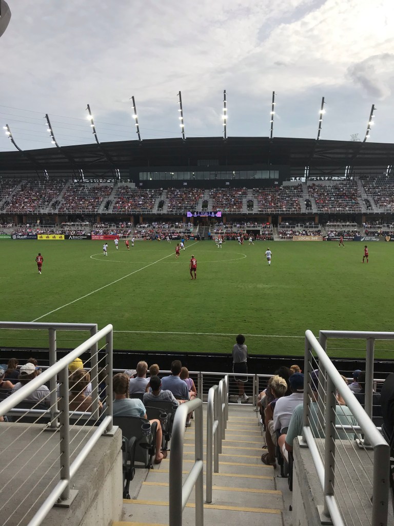 While he was napping, Tom and I had tickets for the Women’s Cup soccer match at our new stadium. Our team was playing Germany (Bayern Munich) so that made it more fun.