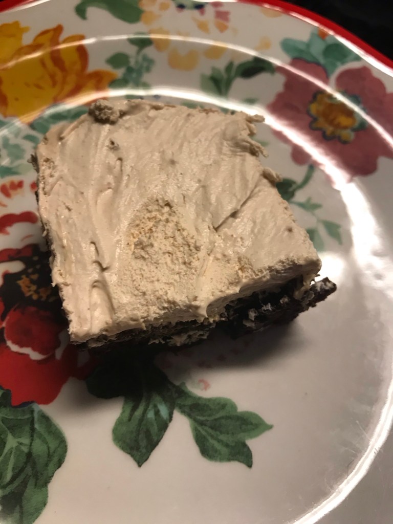 So, I tried a dark chocolate fudge mix this time – go back and read my funfetti here and just swap out the mix flavor and for the frosting I did the peanut butter powder and Cool Whip.