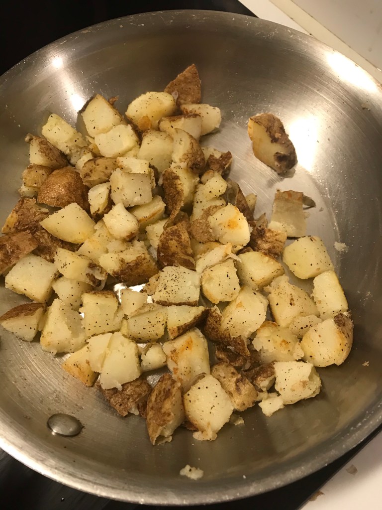 When they are browned up, add your EBB seasoning and let them cook a bit more.