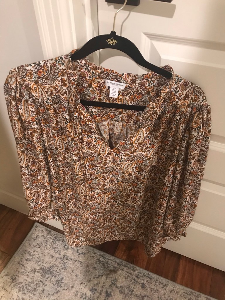 As for what I’m wearing; I just picked up a new color block sweater in shades of brown, rust, ivory, and… maybe tan? I can’t remember the 4th color.. but I’ll wear that with either my brown leggings or my jeans.