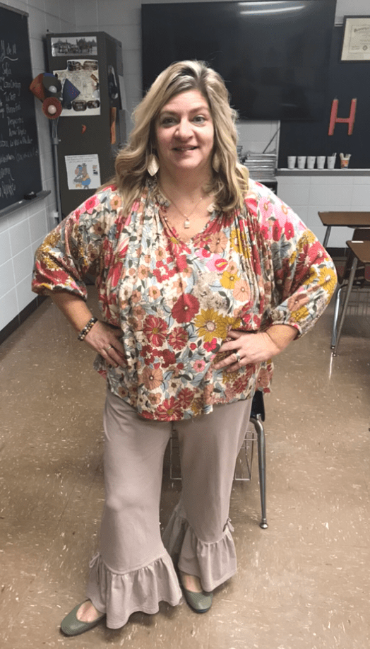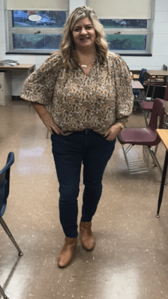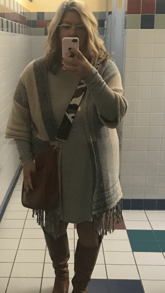 I wore this to school one day – golden clogs, jeans, Target blouse, and a fuzzy vest. A student told me I looked “boujie”.