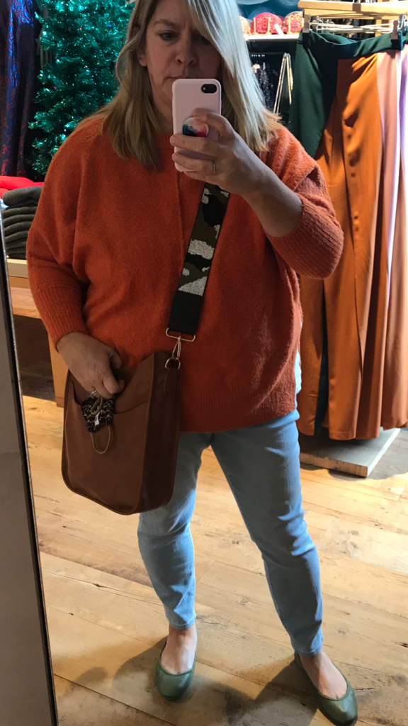 Saturday errands and shopping – Tieks, jeans, consignment sweater from Loft Lou & Grey line.