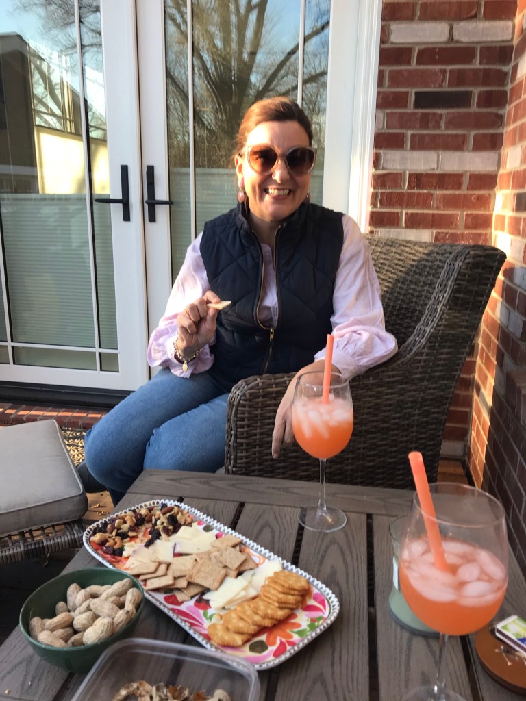 Erica came over for a quick margarita and to borrow some vests for her family photos and then Heather below took her spot for some charcuterie, conversation, and cocktail. I made her an Aperol Spritz. We fancy?