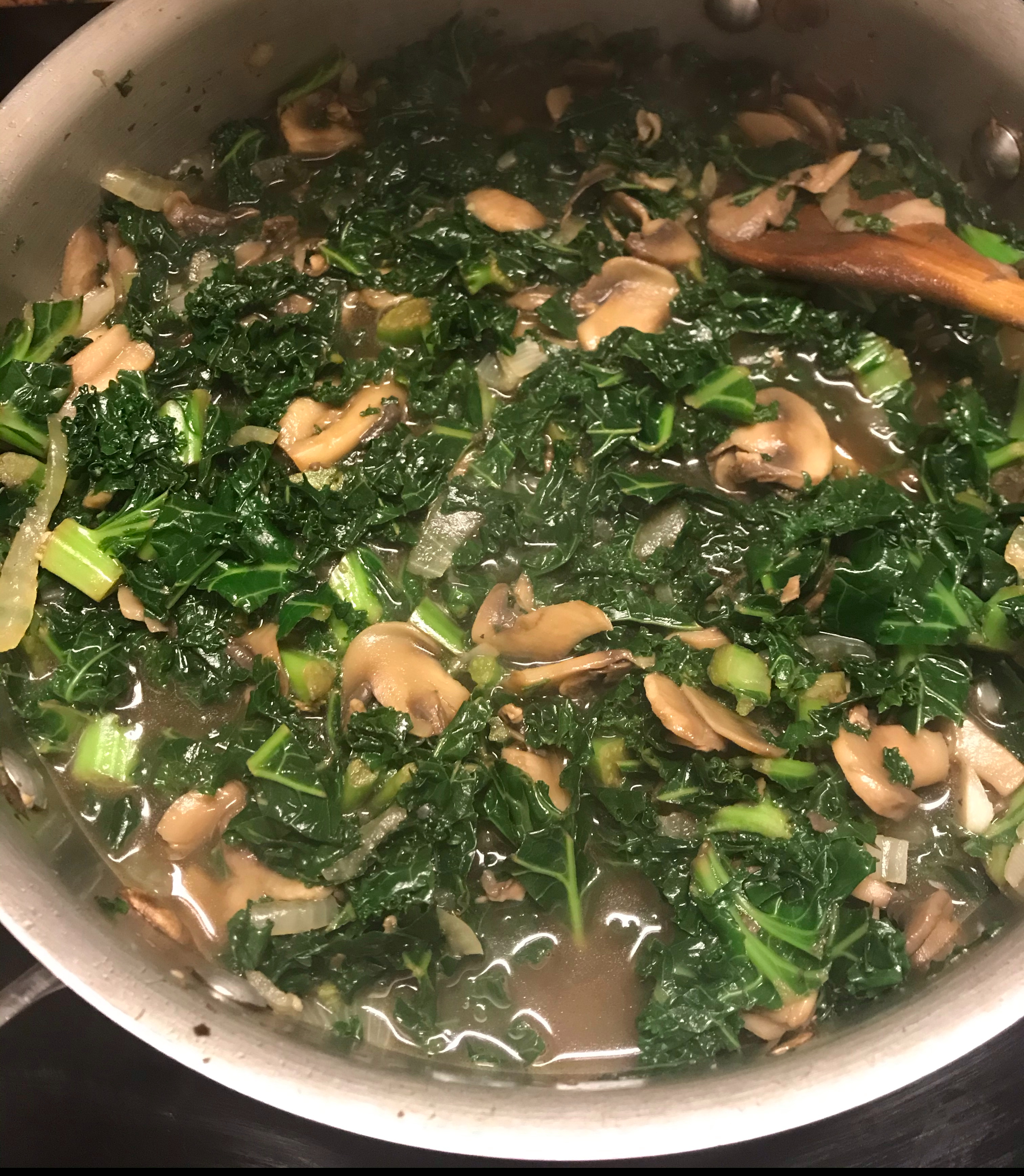 I feel like snow days call for soup, so I had been wanting to make this mushroom, onion, and kale soup with beef broth. I made chicken sausage to add to it the next day.