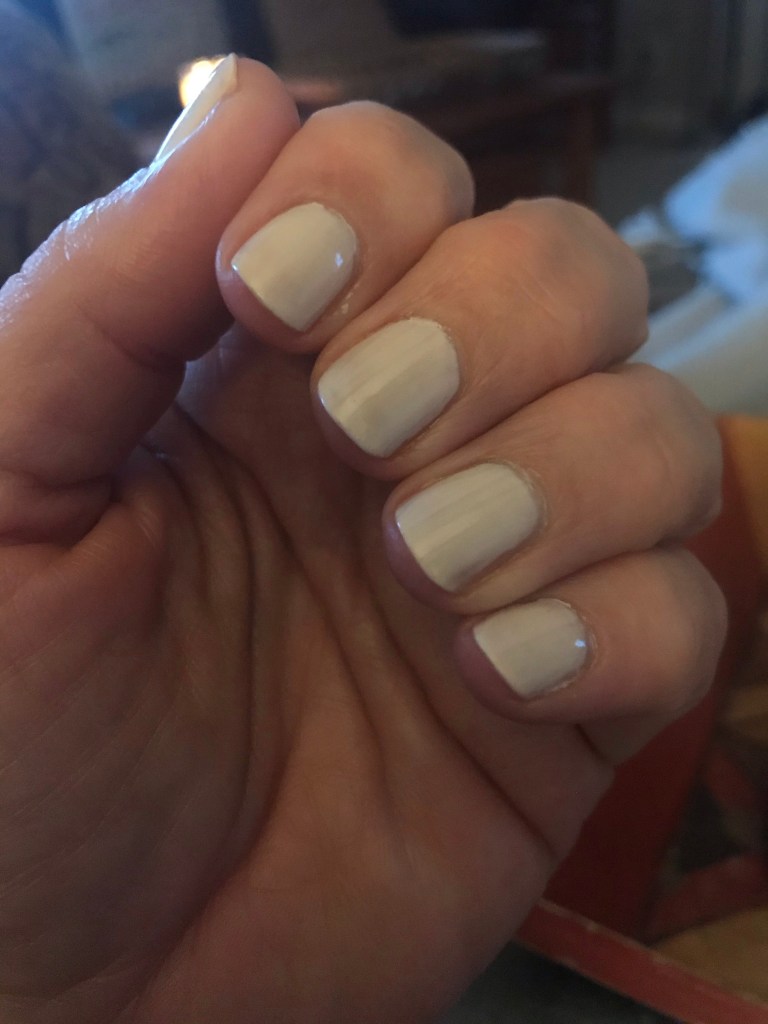 So, I unloaded, cleaned, made my breakfast, took a shower, and then sat down to watch a movie and paint my nails. I did three coats of Essie marshmallow.