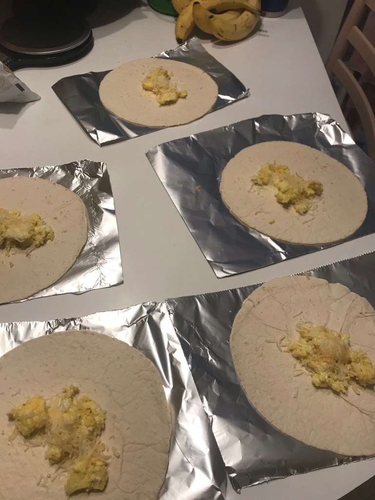 Sunday morning meal prep! I decided to do 2 point breakfast burritos this week: