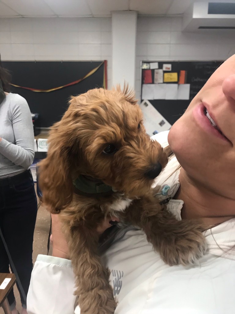 We had a special visitor Monday at school. Elizabeth got a new puppy and her fiancé brought her during lunch.