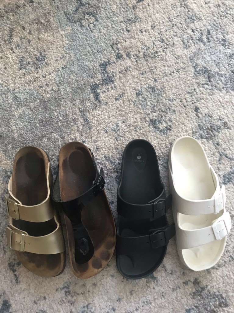 1. I love your MIA clog sandal and your new sandals are so fun! I still love my rose gold faux birks and the white rubber ones, both from Amazon. A pedi is on my “to do” list for next week.