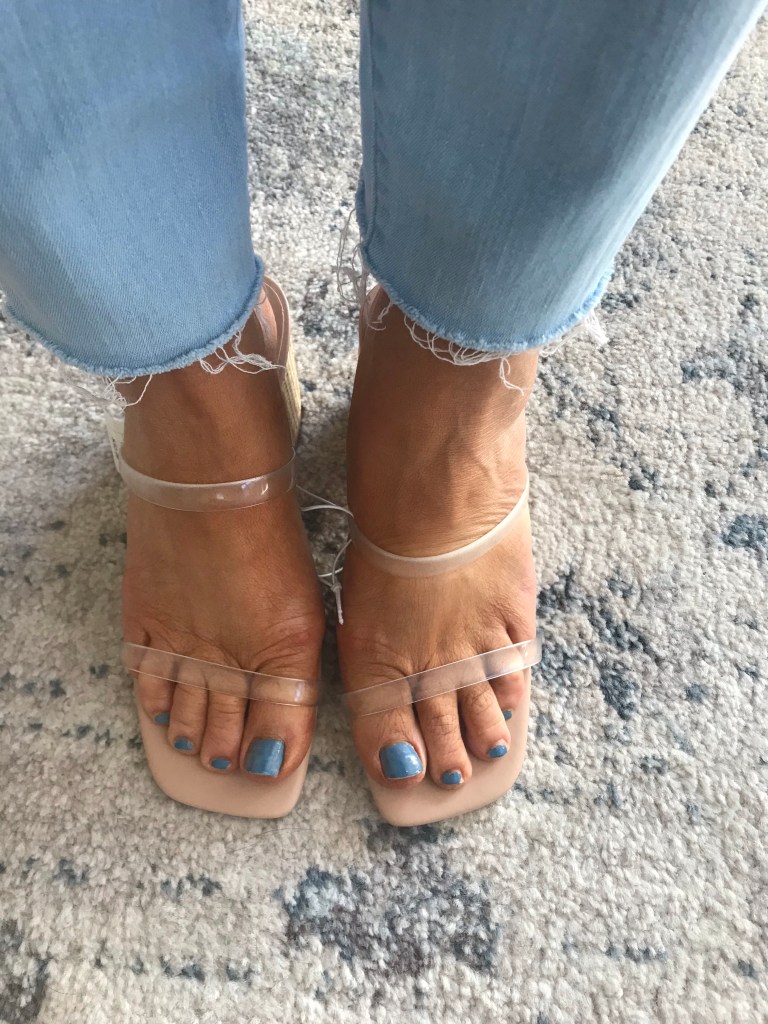 And, I wanted to try the clear trend. I think these from Target are gonna be good. I love the woven heel. I first saw these on Instagram because of Lindsay.