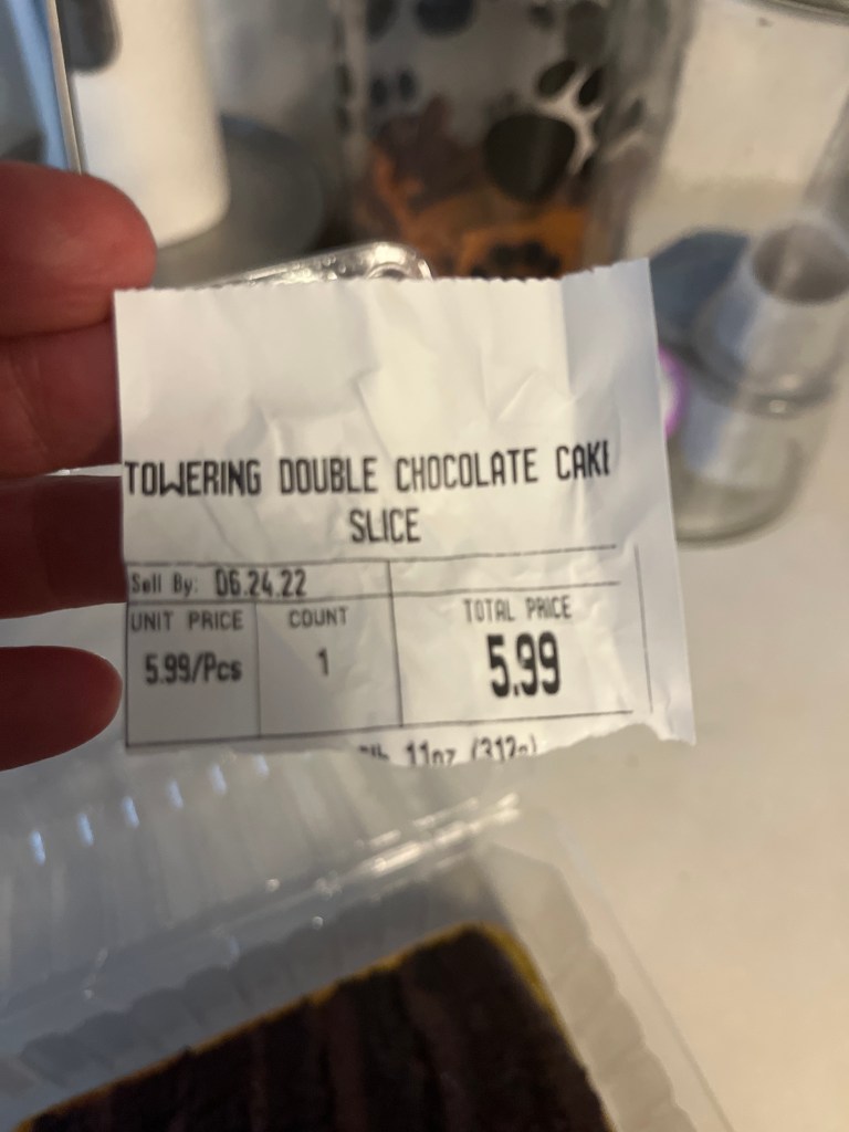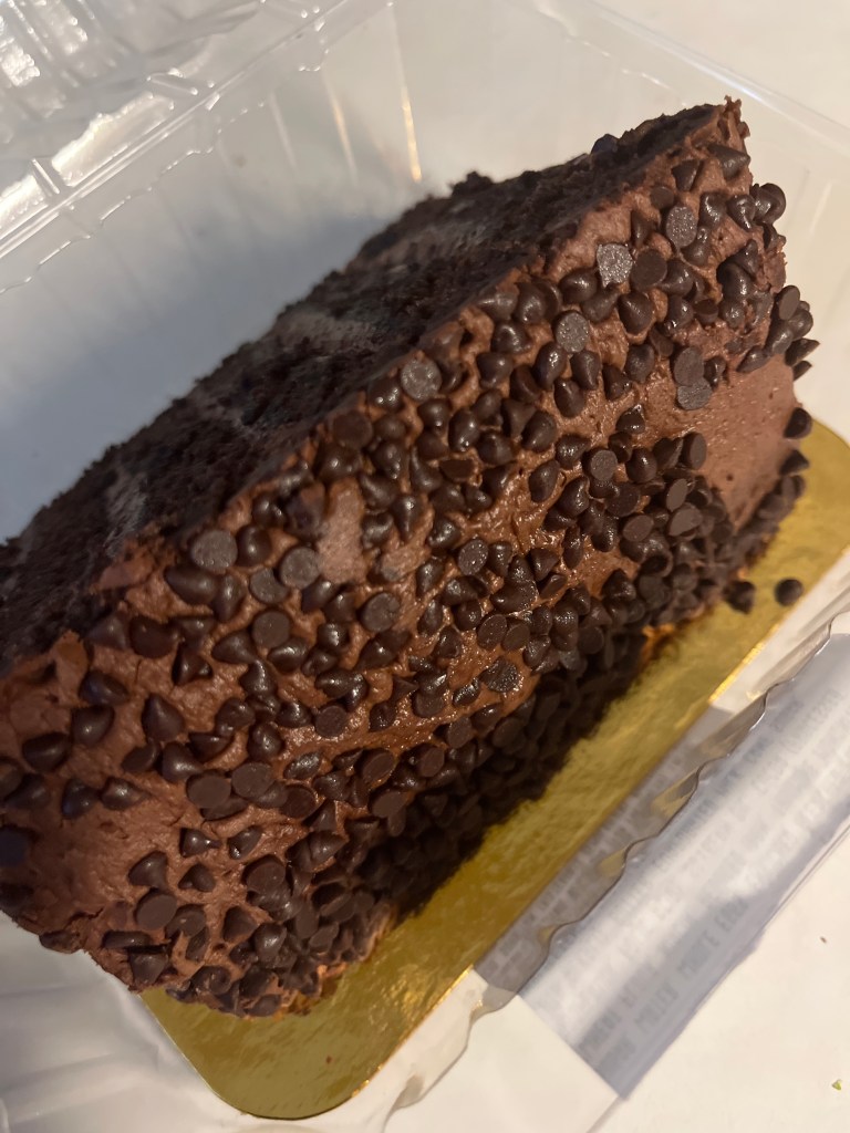 Ok, I can’t be held responsible for the last piece (get it?) of information I am going to share. The Fresh Market has an even better chocolate cake than the one we had from Harry’s/Malone’s Monday night for Tom’s birthday. It is cut into slices and I just buy one at a time. I cut this into 3 or 4 portions depending on how many of my family want some.