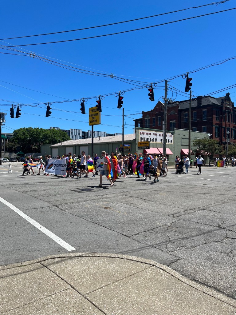 Then, we went to the Pride parade. It was so cool to see so many people out and happy to march for the first time in a few years. We all saw some people we knew, too. We caught some free stuff that was thrown out, too.