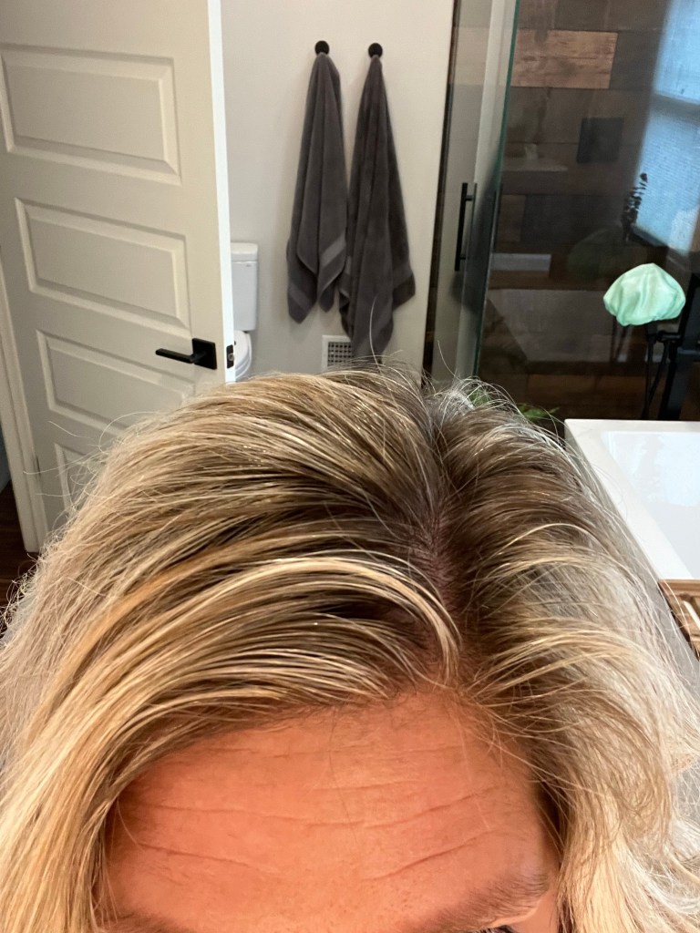 My Swedish friend Tintin told me to spray hairspray on a toothbrush to control the wispies at the top of my head and it worked! I chose to try this first because I didn’t have to buy anything. I didn’t use MY toothbrush, by the way. I used Tom’s. Just kidding!