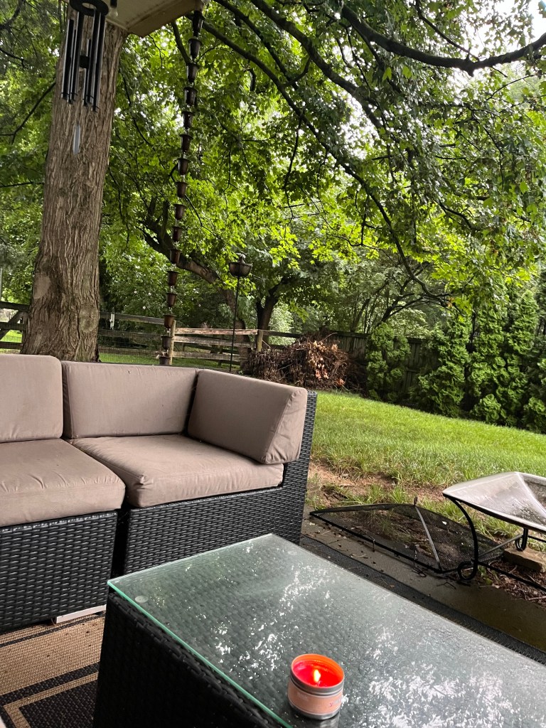 We had a lot of rain this week. I had a nice rainy morning on the patio Monday.