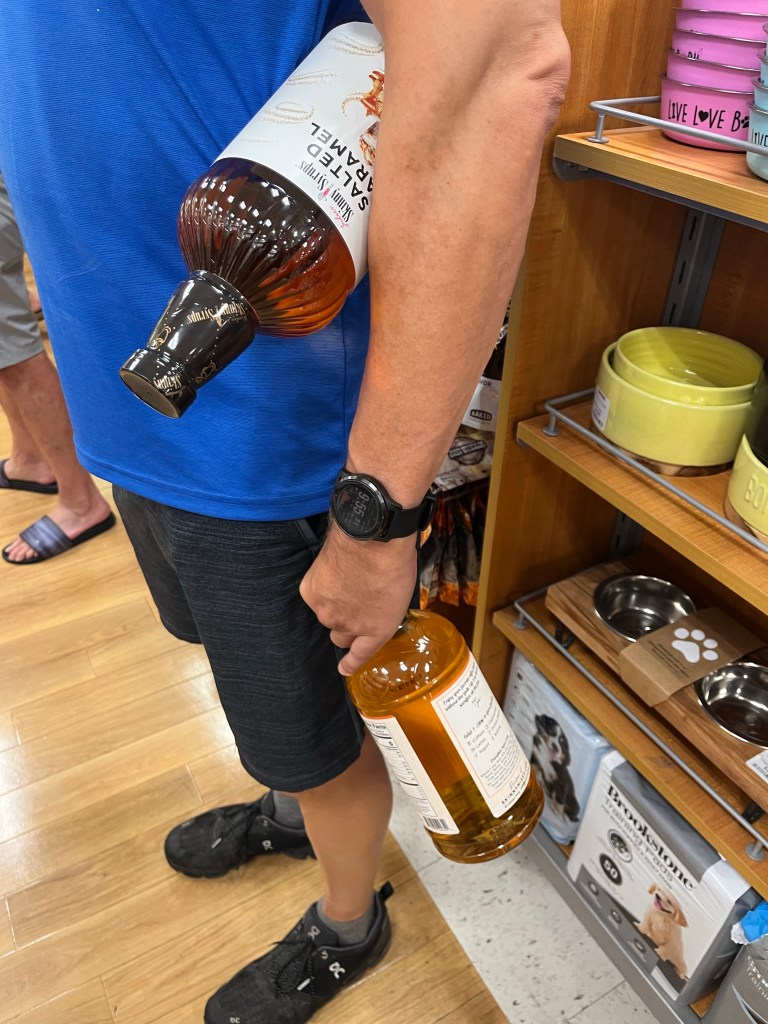 I told Tom I “needed” to go to TJ Maxx on Wednesday to get more skinny coffee syrup and he said “let’s go”. I told him I would only let him go if he didn’t judge my shopping. I would give him a B+.
