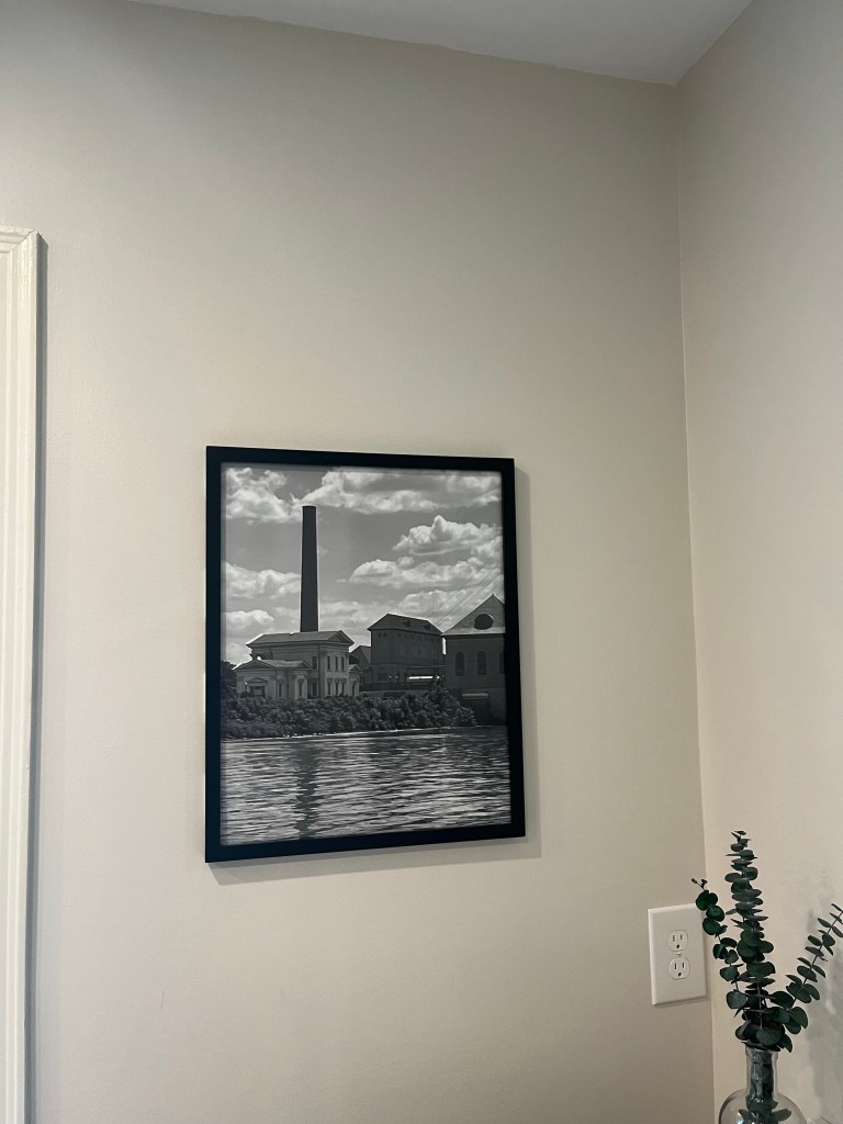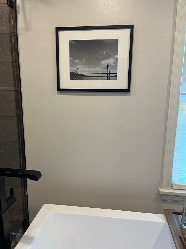 Tom hung my photos! He was concerned about not putting holes in the wall and not hurting the wall so we used the Command strips and we are hoping they hold up.