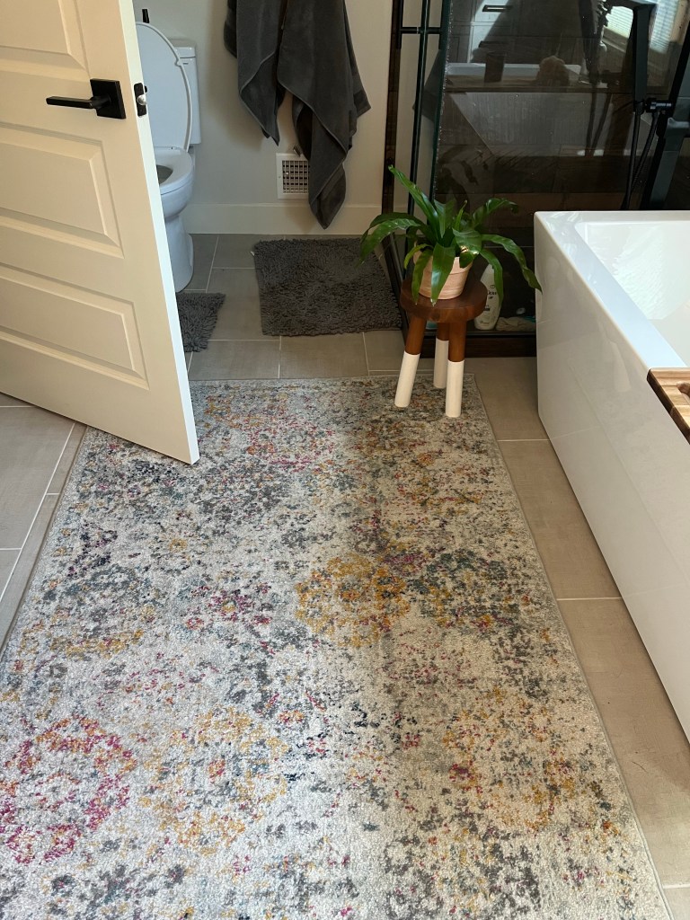 I found the rug on Amazon and I love it. It adds a bit of color to the bathroom.