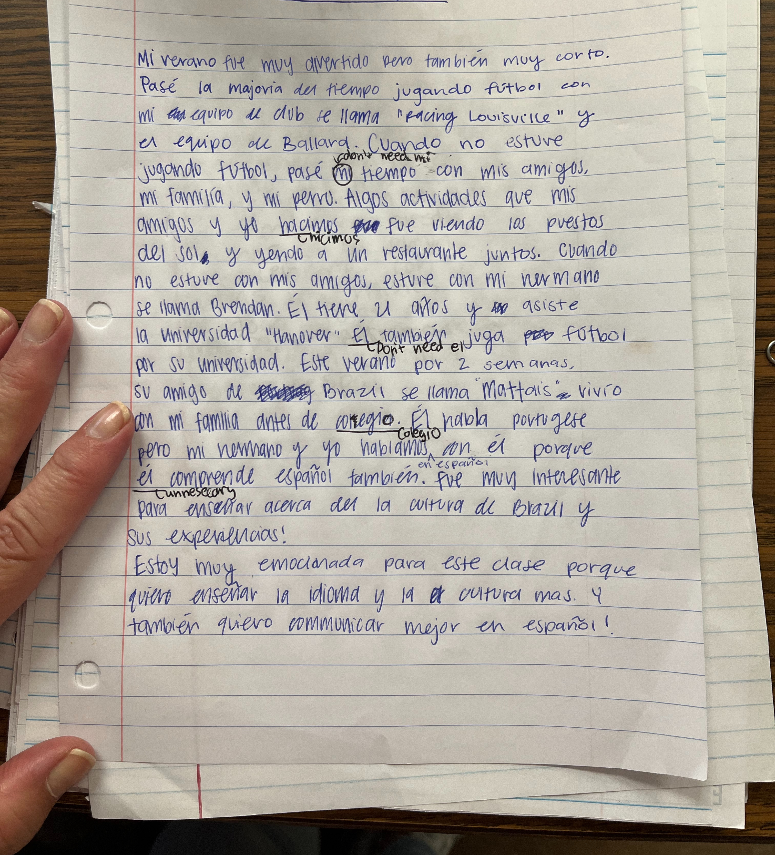 The marks you see are from peer editing before I’ve graded it. The AP exam requires that the students hand write. I have them hand write a lot in class, still.